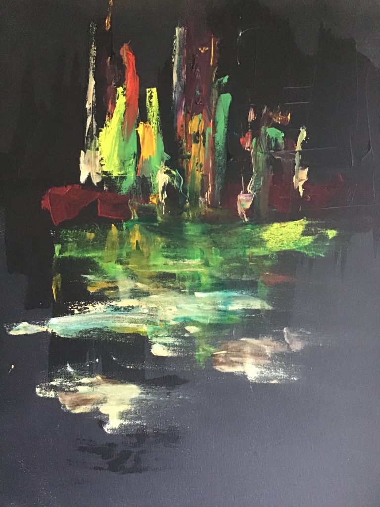 Below you can see both paintings, oil on canvas, Iesha created during the performance: the landscape from O’Neill’s poem and the portrait from her own. Studio 3 Arts requested the pieces to be included as part of the borough’s upcoming Art Trail – which actually begins on International Artist Day.