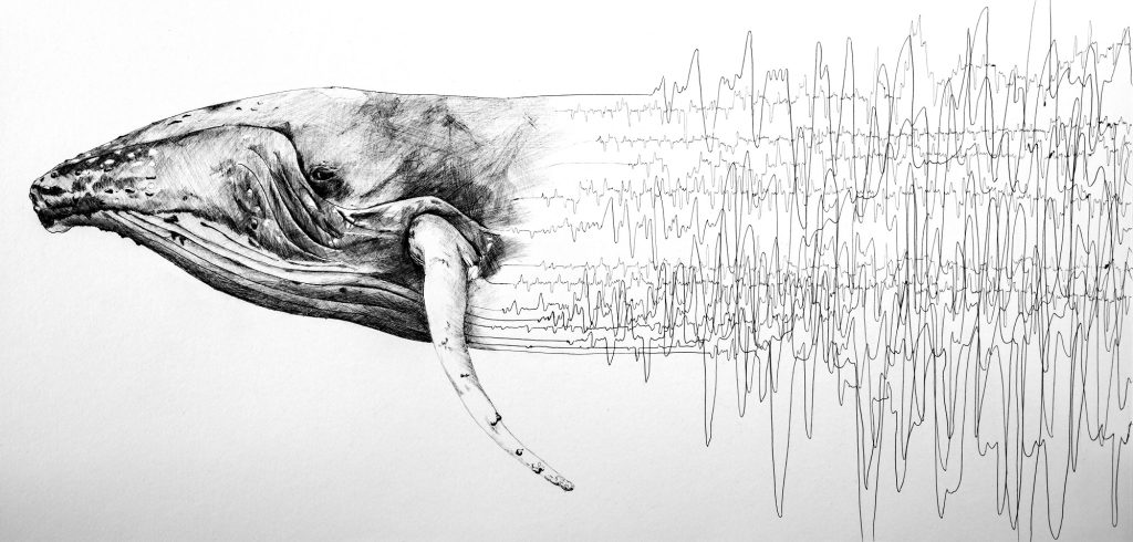 She created this piece of wildlife artivism, When The Whale Sang, to demonstrate the impact of anthropogenic noise pollution on whales, and how it is harming their populations. It won the ‘Human Impact’ category in the David Shepherd Wildlife Foundation’s Wildlife Artist of the Year 2021, and was awarded the inaugural Ingrid Beazley Award. It’s also part of UNESCO’s Creative Resilience Exhibition ‘Art by Women in Science’.
