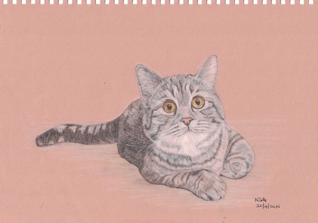 Next up, we have Norma Armand. Norma is a talented writer and her writing has featured in Write On! before. She’s also an equally talented artist and sent in these two beautiful drawings of a tabby cat and a goldfinch.