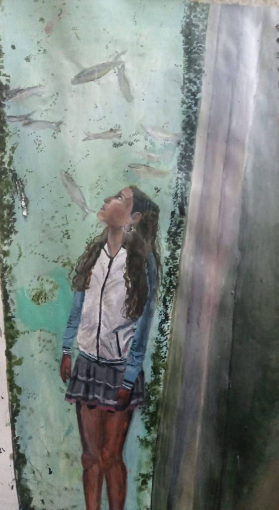 Wonder, by 15-year-old art student, Sophia Pelc, shows a young person looking up in wonder at fish in an aquarium. Personally, I’m always happy to see young people engaging with nature, and through art, especially with what’s going on in the world today. The natural world is full of wonder, if only we take the time to stop and look.