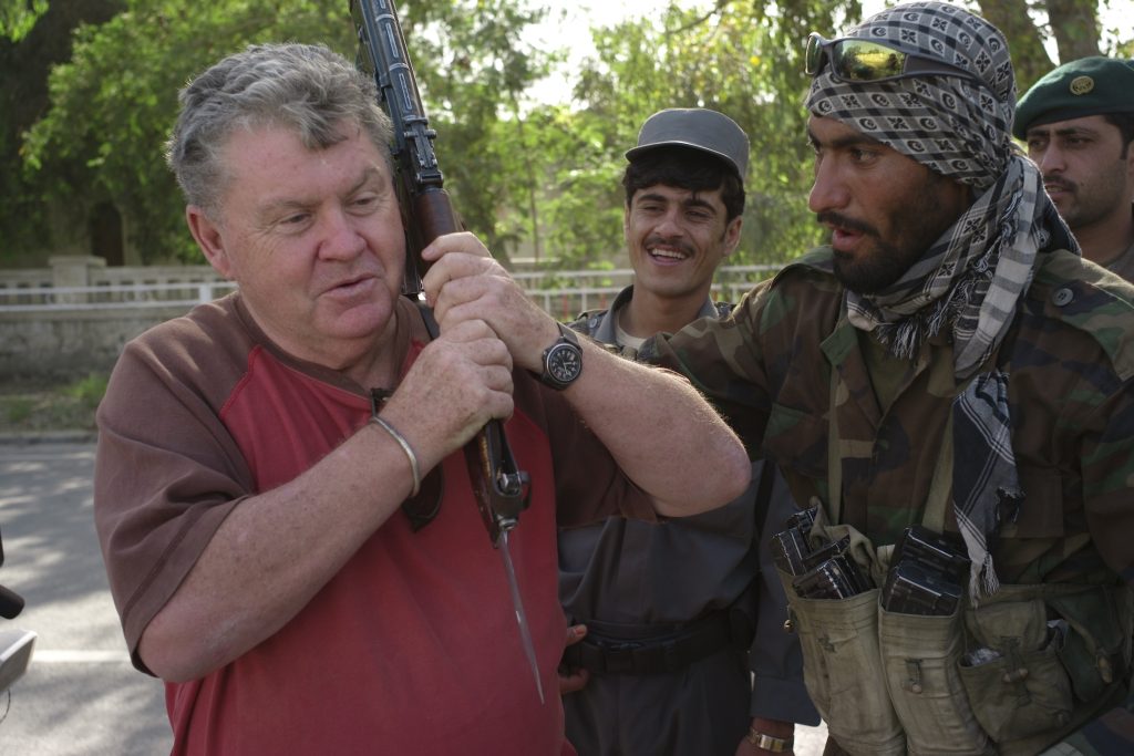 Caption: In Jalalabad, Afghanistan, just before the Taliban suicide bombing, where a 12-year-old boy blew himself up on a police base, killing 20 paramilitary police and commandoes and seriously injuring 30 of us.