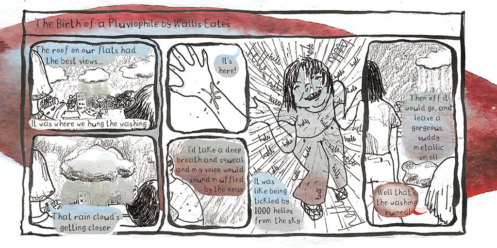 Lastly, Wallis Eates shows us how fun rain can be through the eyes of a child in the comic strip Pluviophile: