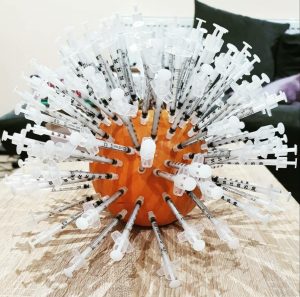 Holly: I will continue my tradition of watching The Halloween Tree and reading something spooky. A new tradition I began a few years ago was to save my syringes and decorate a pumpkin with them; signifying how scary diabetes is, while creating something fun and personal with items I would otherwise throw away. I like to call this one my Pinhead Pumpkin: