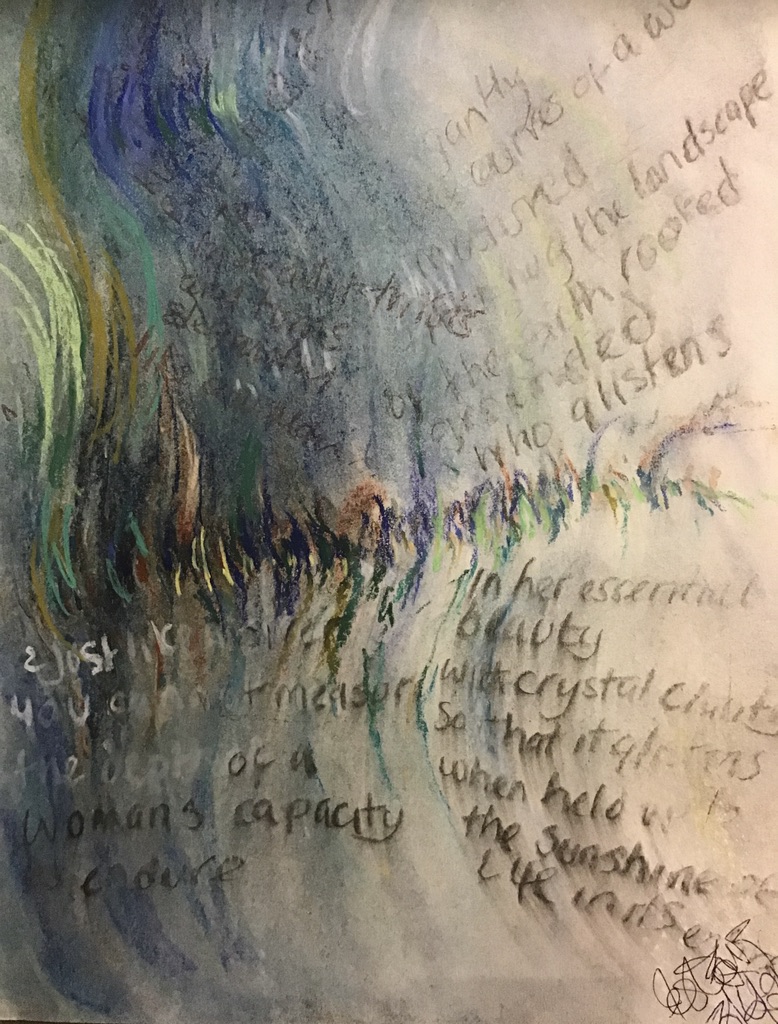 First up, is a poem and accompanying illustration: the words of the poem becoming part of the art. The creator, Iesha Denise, delves a little deeper into how we can view a river: