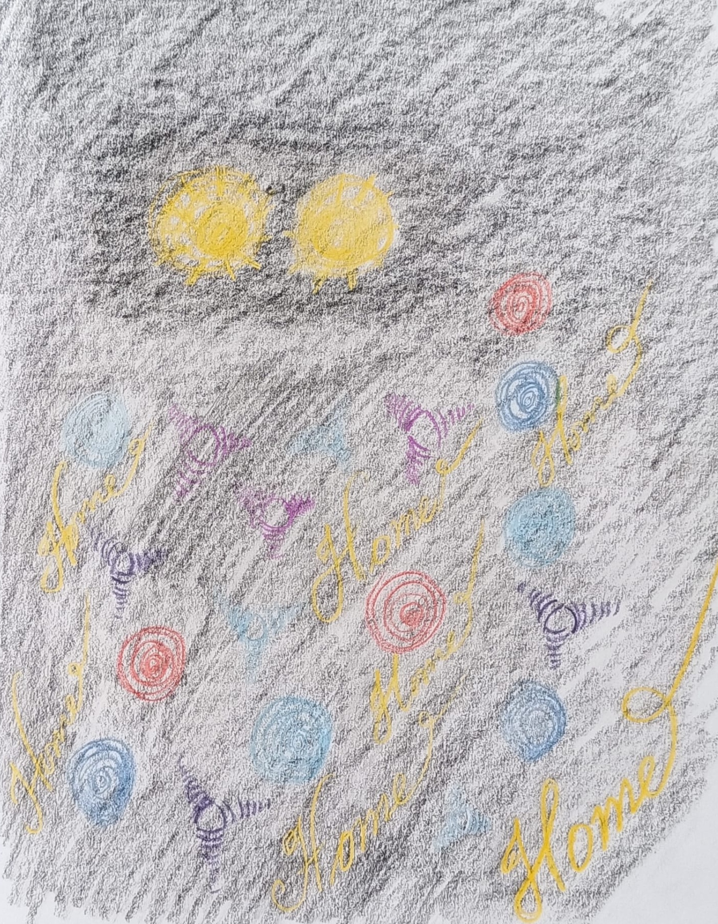 Afsana has also shared a piece of art to illustrate the fragmented memories of coming in and out of consciousness and making sense of the world around us and ultimately ‘coming home’, titled Memories Of Finding Home.