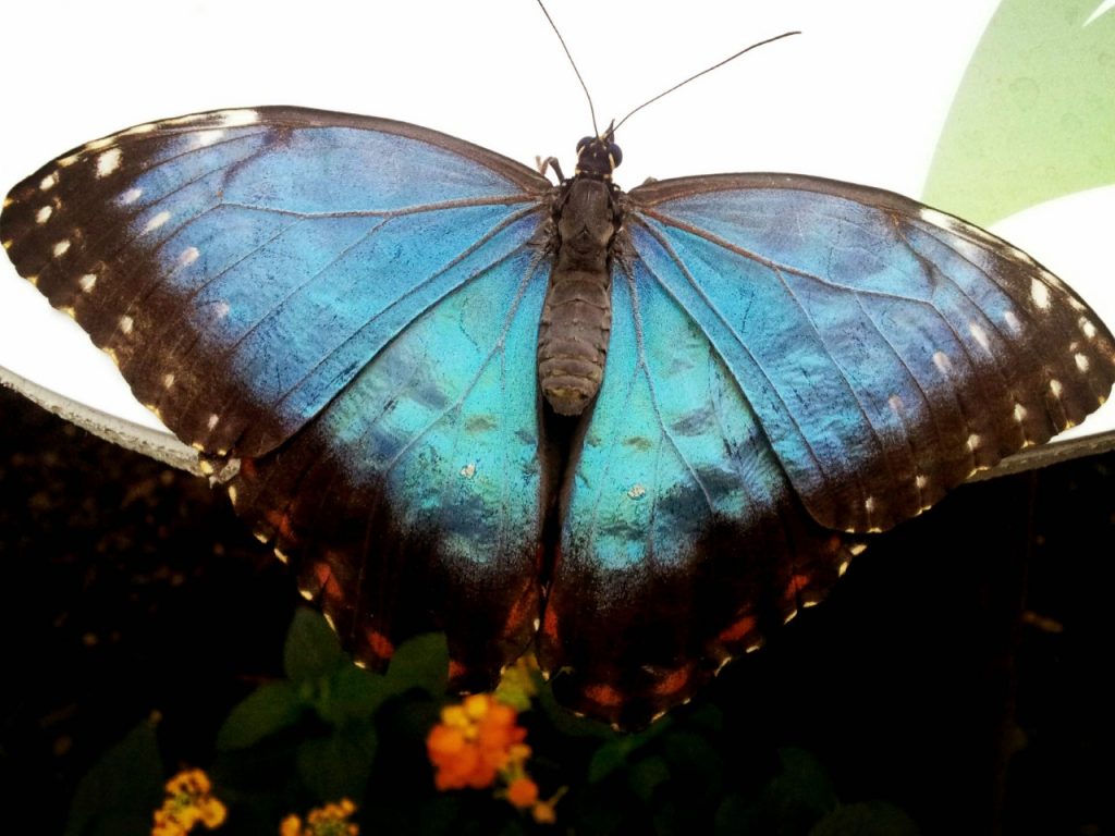 There are numerous examples of ‘invisible’ colour in nature. Structural coloration is one of my favourites. I worked in the Natural History Museum’s butterfly house for several years and often talked about this with regards to a particular species: the blue morpho (Morpho peleides). It appears metallic or iridescent blue; however, it’s not. Its colour is not pigment but is created by the alignment of its scales refracting light. If it’s shiny in nature, it’s probably because of light. Which is why I like asking people: What colour is a kingfisher?