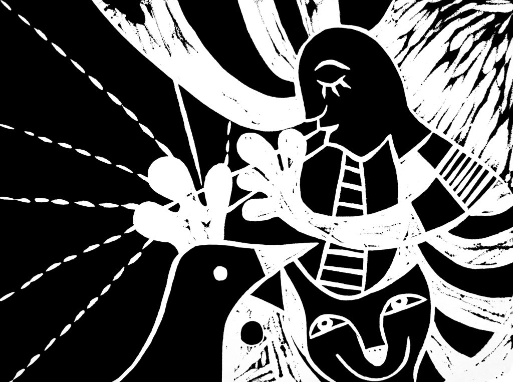 So for this Monday Moments page, our contributors are speaking their language and hoping we can understand them. First, let’s introduce how language can be portrayed in art, with two pieces by Patricia Bidi:
