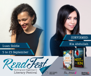 Tomorrow, 5th September at 6.30pm, award-winning East London authors Luan Goldie & Kia Abdullah will be in conversation at Dagenham Library, discussing their critically praised collection of past and upcoming novels, from the Nightingale Point to Next of Kin.