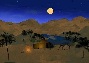 As Darayan told Demeter, “No,” her eyes frosted with ice and not a single blink came. She then went to the oasis and found the workmen setting up their camp and came to them saying: “Listen to me. This ground is mine. The trees, the flowers, sand and water.” The goddess then threw out her fists and the men were blasted back, crying out. Nesting birds darted off, alarmed, and likewise the beasts of the land. As the men fled, Demeter drew in a vast breath and blew, whirling their tools and what little of the huts they had built, into the sky. She waved softly and the tree branches that shook in the gale of her breath were stilled. Then, she called out to the animals that all was peaceful now and they could return to their homes.