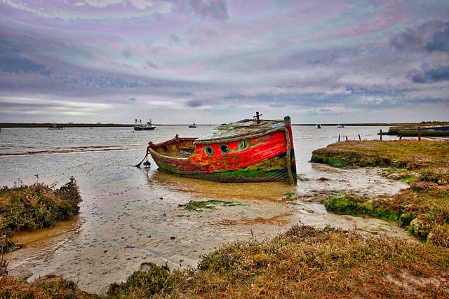 Funny how decay can please the eye — though far out in the river’s mouth,