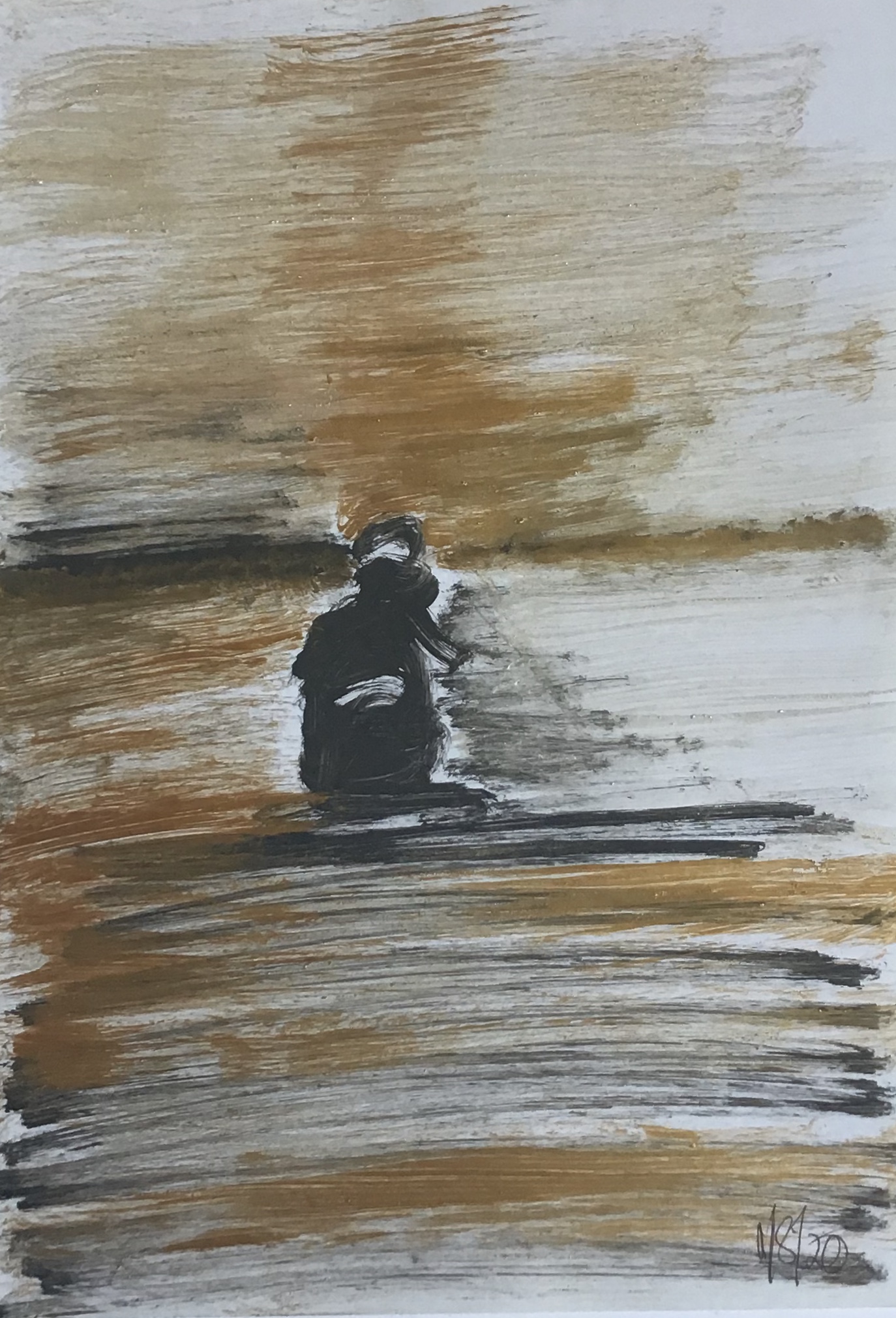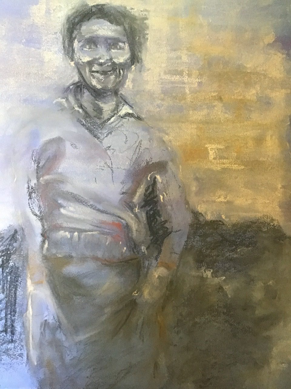 This next piece reflects my translation of a photograph I have of my mother after her recent arrival in the UK during the Windrush era. It was a few years before my own arrival, so I had to imagine her perspective.