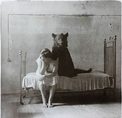 The girl and the bear sat on a bed, looking off into the distance. She, her head in her hands, looking off to the side, daydreaming, never moving a muscle. The older children, the ones done with the running and the squealing, would stand as close as they could to the bed and the girl and the bear. Daring each other to stretch, to stroke the fur, to interrupt the gaze of the girl.