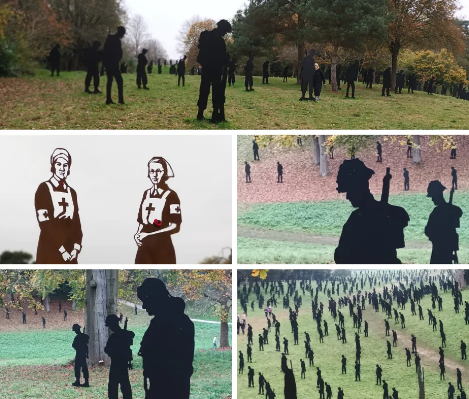 It’s a powerful piece of art. The silhouettes represent the military personnel from all the major services. Two nurses have been included: Sister Mollie Evershed and Sister Dorothy Field, who died while helping to save 75 men from the hospital ship SS Amsterdam. There are also figures of French Resistance members in the shadowy bushes. It’s worth a visit, if you can. It gives us a moment to think about the scale of the sacrifice we should all remember.
