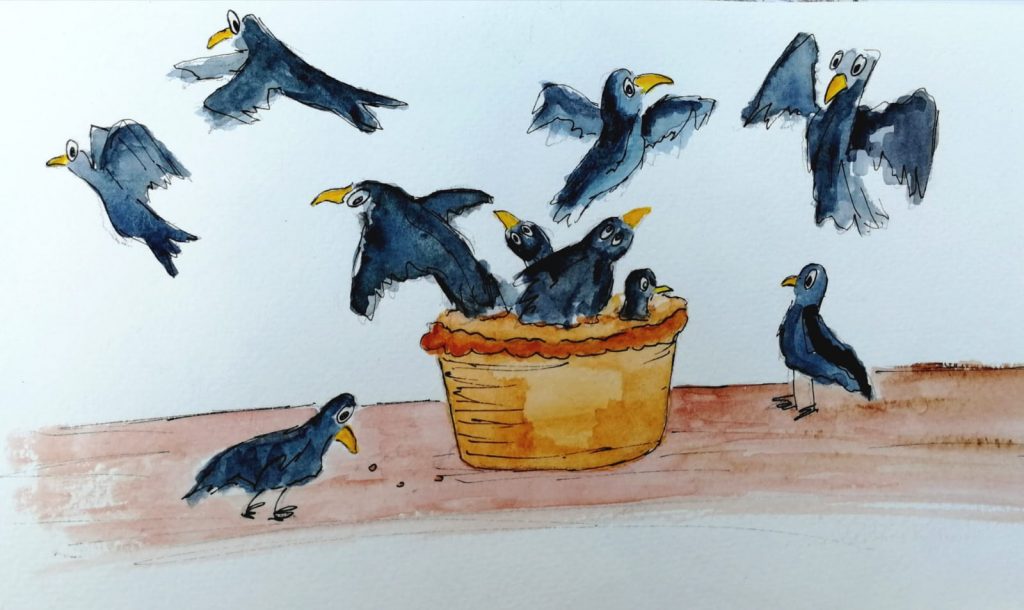 I love it that there are so many references to creativity and art. I’d like to share some pictures with you: Nuala Clarke’s A Hobbit Hole and Some Black Birds Baked In A Pie and a picture of Brighton Pavilion by Liam McGregor,  which evokes the memory of pre-lockdown times.