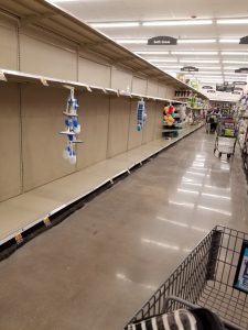 The first two weeks of the ‘Stay at Home’ order from the Colorado governor went great. I got some writing done while watching my grandson. What wasn’t so great was going to the store and finding out all the paper products were gone! I went to do the grocery shopping on my regular shopping day, clueless that people had been panic-buying paper products for this Stay at Home order. Shelves were pretty bare — canned foods, ramen, rice, beans — all gone, and meats were pretty well picked-over. I had to make some quick dinner substitutions, but I managed to get food for the week.
