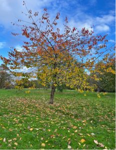 perches on a cherry tree