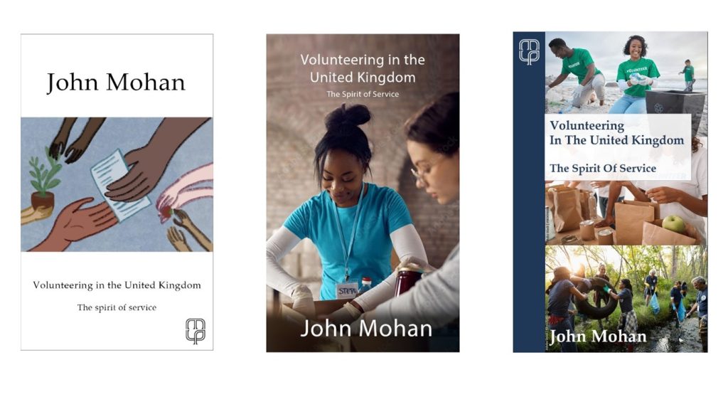 This project, designing the cover for Volunteering In The United Kingdom: The Spirit Of Service, by John Mohan, however, was a live brief. This means it’s a real project, often with a deadline (and sometimes paid), which students can undertake to experience a design project in the real world.