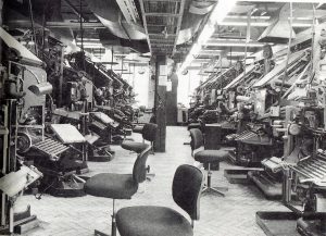 Similar printing rooms were running in Manchester and Glasgow, to take care of the Midlands and the North. And this was just one, and a relatively small one, of the London-based, National Dailies that were printed in millions every night of the week. I realised I was part of an exciting business. No other country had this national newspaper system. In all other countries, newspapers were relatively local. However, the smallness of Britain and the extensive railway network made it possible for newspapers to be printed in three centres and be distributed over the entire country within a matter of hours. Nowadays, of course, computer and tele-technology simplify the entire process, but in the 1950s, if you wanted to print the same newspaper in two cities, you had to cast a lead stereo and send it by steam train. Considering the difficulties, printing and distributing a total of something like 15 million national morning newspapers every day of the year, was, and still is, an incredible feat of logistical organisation. Today, a journalist can write a story, for it to appear on a customer’s computer on the other side of the world minutes later. Where is the romance in THAT?!