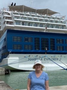 The following day, I received a message asking me to attend a meeting with the cruise director, Ted, to discuss the workshops. It was there I met not only Jacqueline, but also a gentleman called Jonathan, who’d be giving talks on astronomy and husband-and-wife team, Sheila and Richard, who were old hands on cruise ships with their craft workshops. A writer who was due to give historical talks failed to arrive and we never did find out why!