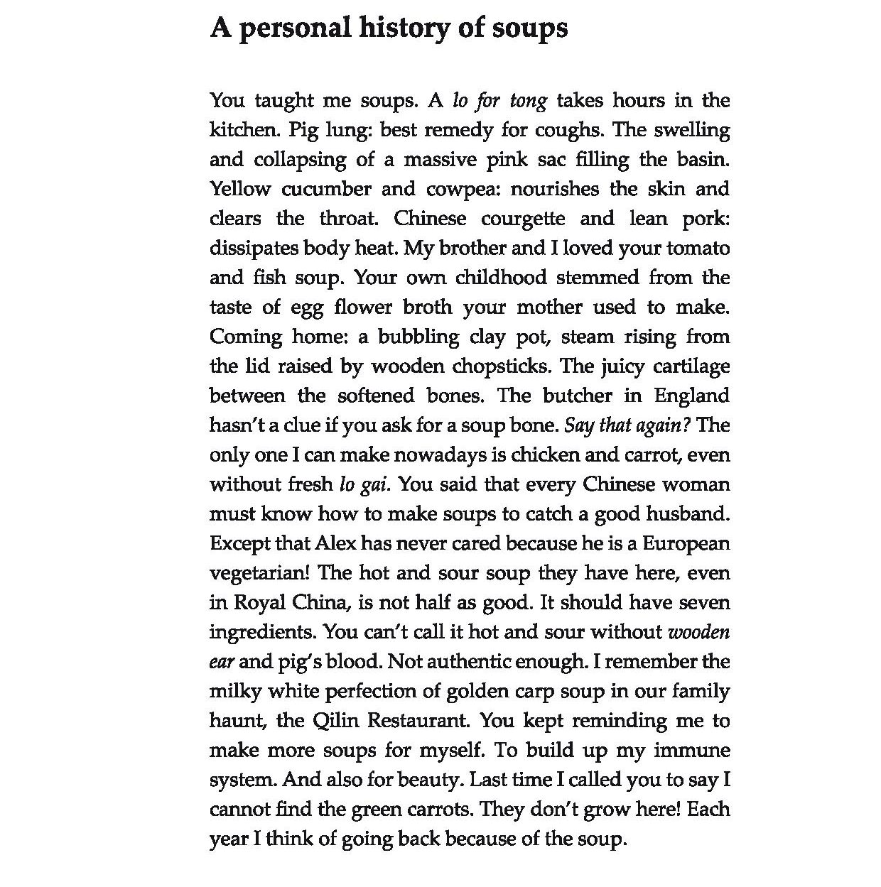 A personal history of soups is from Letters Home published by Nine Arches Press, ninearchespress.com