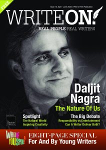 Our lead interview is with the seminal poet and RSL Chair Daljit Nagra who, discusses ‘the Nature of Us,’ with Write On! regular, Juneha Chowdhury (you can also listen to this through April’s edition of the Write On! Audio podcast). Another exciting piece of news is that, thanks to Libraries Unlimited, a fellow Arts Council England National Portfolio Organisation (NPO) based in Devon, we have grown by eight pages. Their mini-magazine celebrates winners and runners-up from the ‘What If You Spoke’ Competition. Superb Writing and beautiful imagery bring a wonderful youth energy to Write On!.