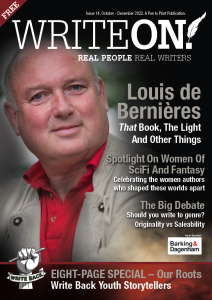 Issue 14 also includes an EXTRA EIGHT PAGES, courtesy of partners, registered charity, Write Back. The eight-page Special, Our Roots, features wonderful writing by courageous young Storytellers, sharing what it is to be a teenager in east London in this day and age. You can also read The Big Debate – Writing To Genre… Or Not? Exploring ‘Originality vs Saleability’ and Insight – Writers Helping Writers. Our Destination Barking And Dagenham page introduces Arty’s Sculpture Trail at Eastbrookend Country Park.