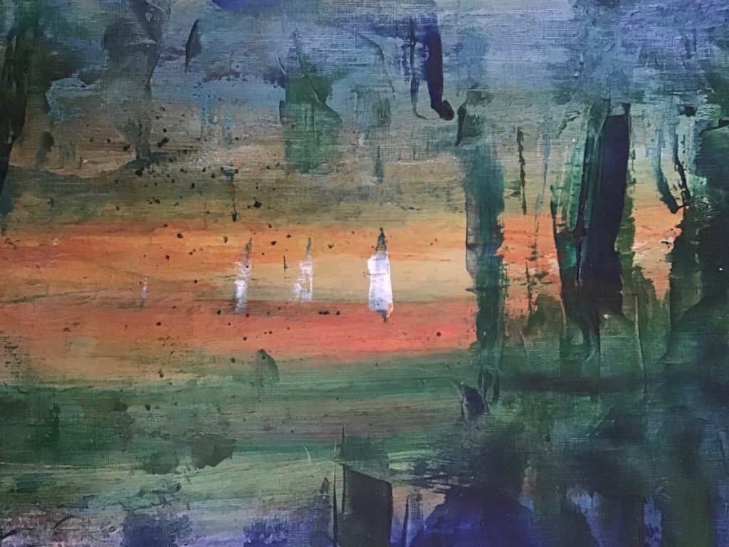 I love music, which comes from a legacy of my father’s extensive and eclectic collection, and both music and art influence my work. I have always written and painted equally, as far back as I can remember. However, an experience at art college saw me leave the arts for 30 years.